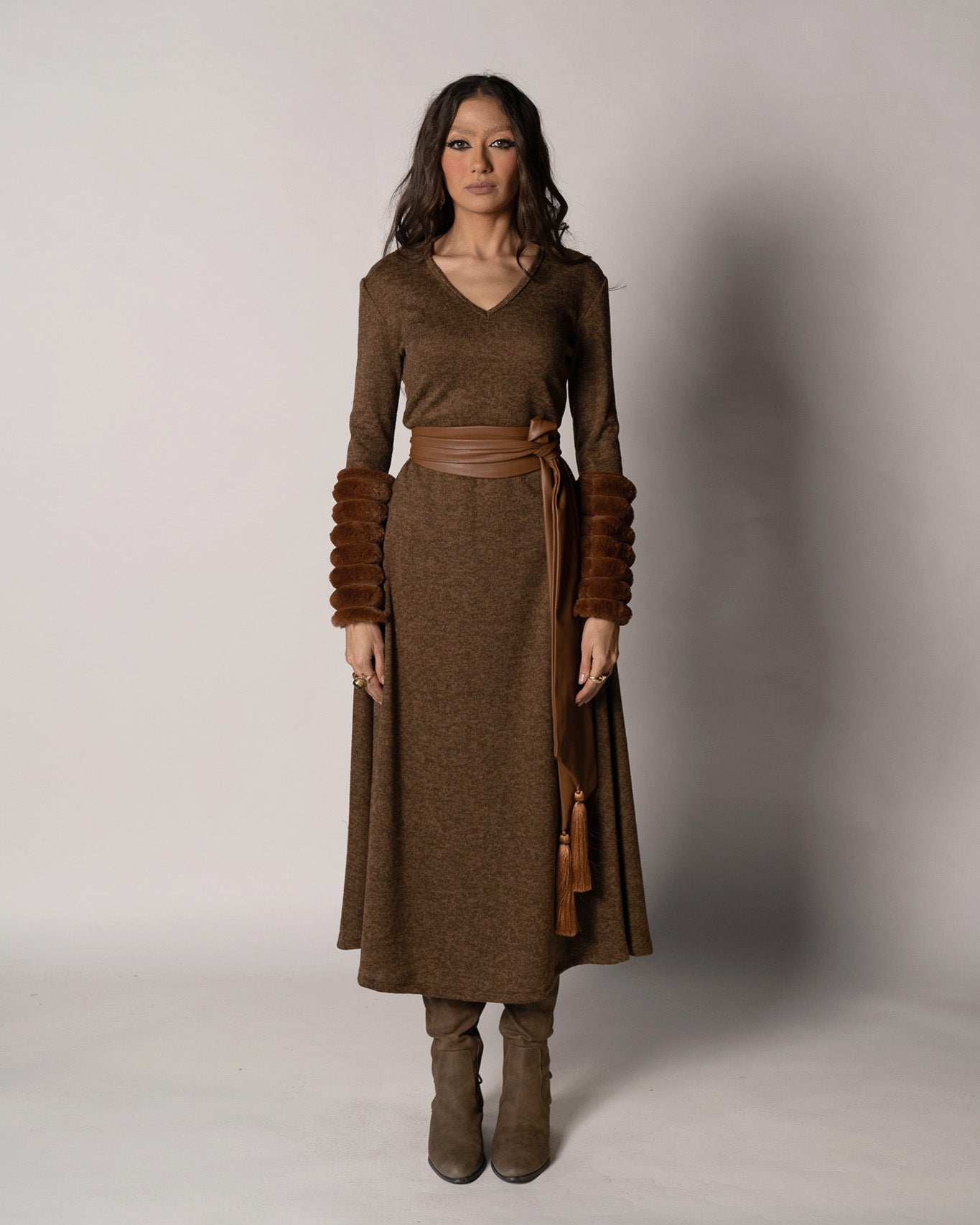 Note: Set (dress, fur gloves and belt)