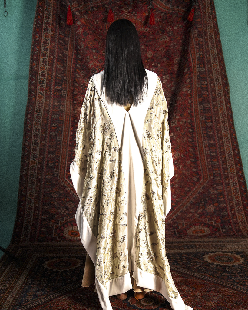 Fabric: Satin, velvet, linen